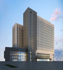 Scope of work: dry hanging granite stone curtain wall, glass curtain wall, concealed frame curtain wall window, aluminum veneer curtain wall, steel structure canopy.